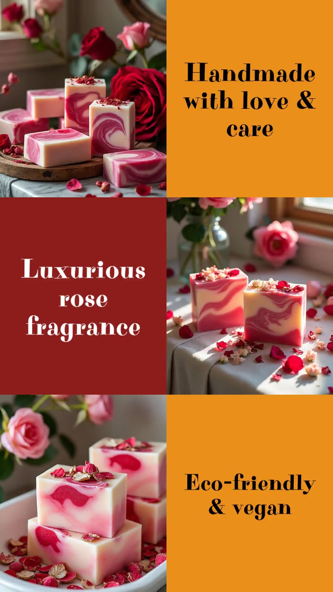 Expertly handcrafted with natural and organic ingredients, our Red Roses Soap features a luxurious blend of coconut oil, sustainable palm oil, vegetable shortening, olive oil, sunflower oil, cocoa butter, and castor oil. Infused with the captivating aroma of red roses and adorned with delicate red rose petals, this handmade soap is a sensory delight for your skin and senses. Indulge in a nourishing and eco-friendly bathing experience with our Red Roses Soap.