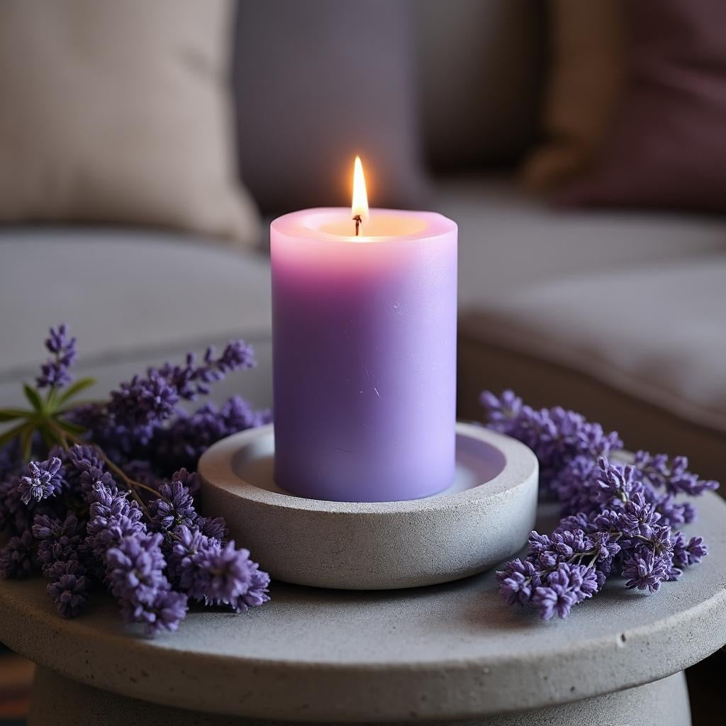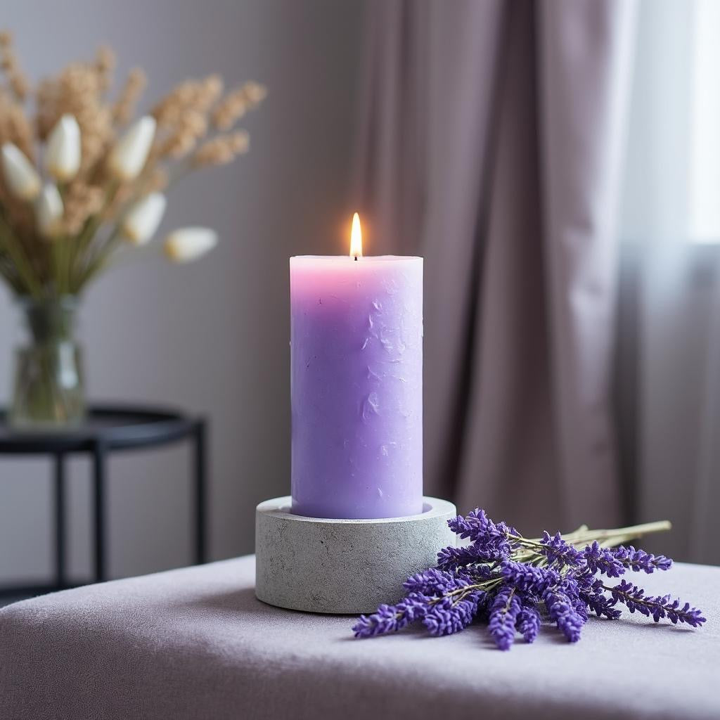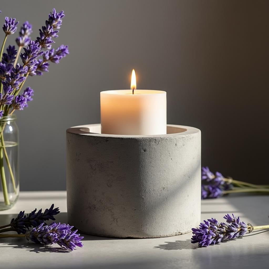 Expertly crafted in small batches, this Lavender Soy Candle provides a calming and natural aroma. Made with concrete holders, its elegant design and lavender fragrance oil make it a perfect addition to any room. Embrace the benefits of a handmade and all-natural candle for a truly relaxing experience.