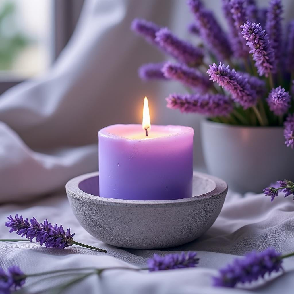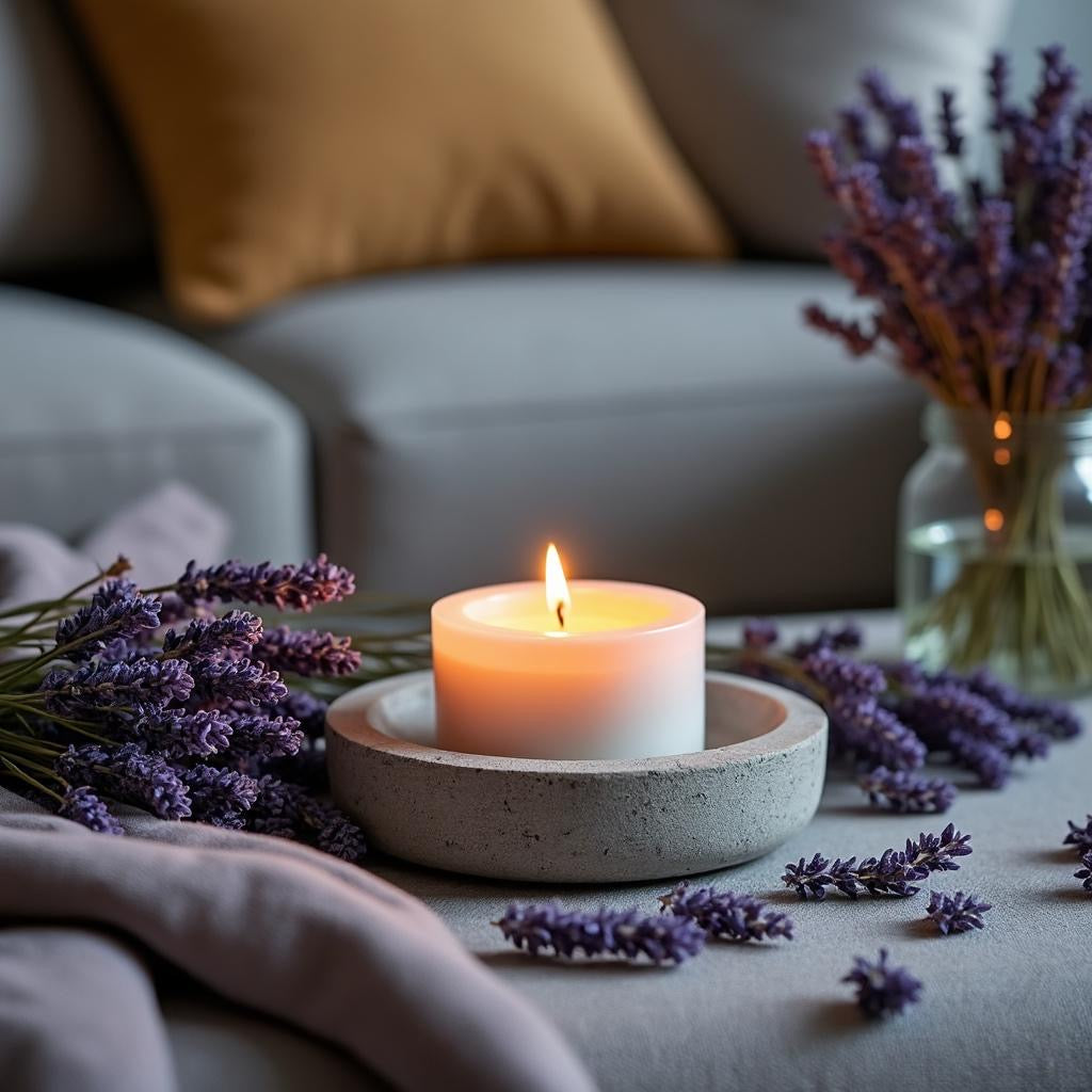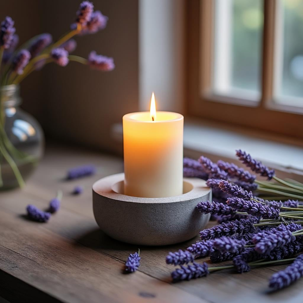 Expertly crafted in small batches, this Lavender Soy Candle provides a calming and natural aroma. Made with concrete holders, its elegant design and lavender fragrance oil make it a perfect addition to any room. Embrace the benefits of a handmade and all-natural candle for a truly relaxing experience.